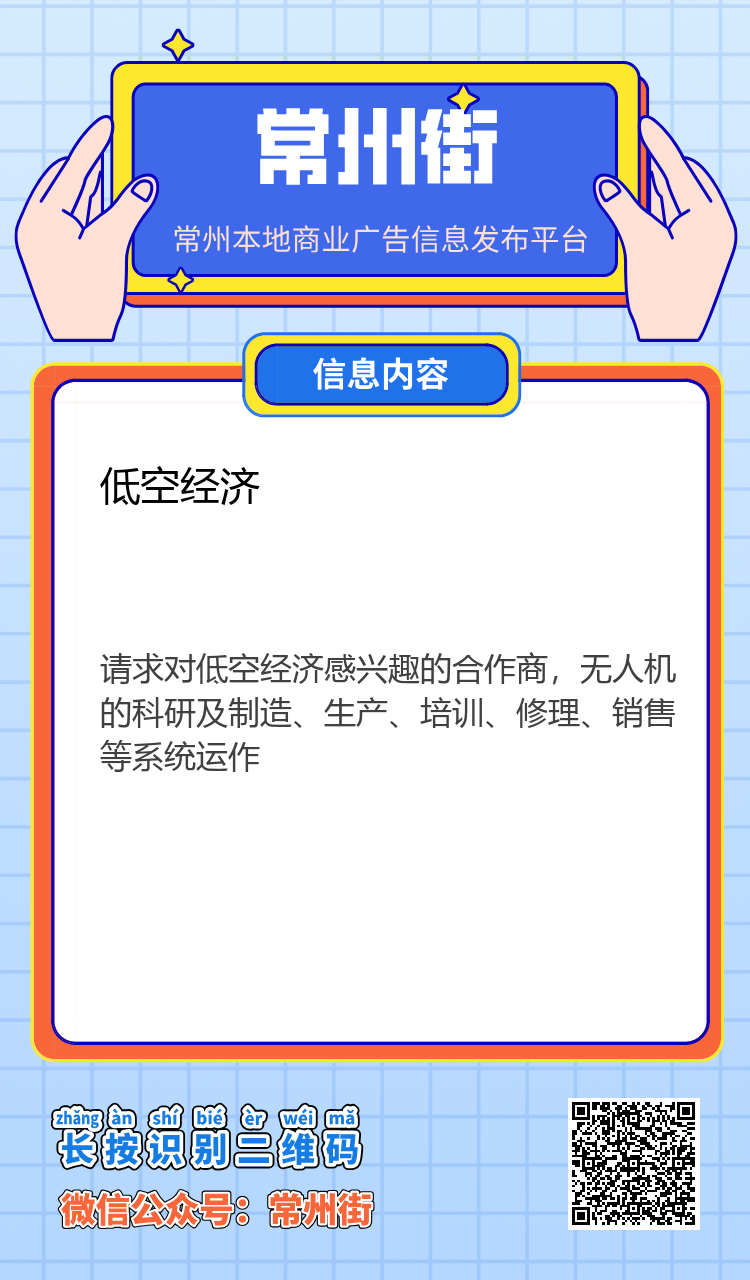 请求对低空经济感兴趣的合作商,无人机的科研及制造、生产、培训、修理、销售等系统运作